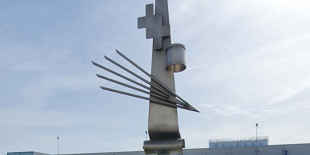 Het kunstwerk dat aan de voorzijde van het bedrijf in het Business Park in een bloemenborder is geplaatst, symboliseert de Smeets Stein Groep, die bestaat uit een samenvoeging van drie vakbedrijven, o.a. Smeets schilderwerken Stein b.v., Smeets woning en project ontwikkeling b.v.en Smeets straal & conserveringswerken Stein b.v.