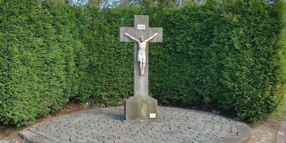Elke dag fietste de heer Odekerken van Lindenheuvel naar Elsloo en omgekeerd, dit voor werkzaamheden op de boerderij. Na de dodelijke aanrijding zou hij het kruis hebben laten plaatsen. Het is een hardstenen kruis met een corpus van gietlegering. Na diverse verplaatsingen staat het nu op een terpje van maaskeien, tegen een achtergrond van dennen.
