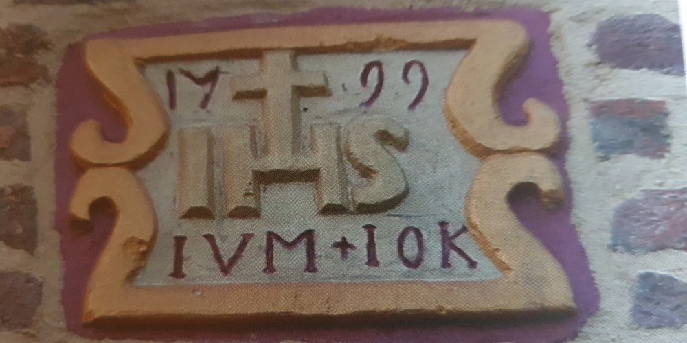 In het fraai gerestaureerde huis Keerend no.1-3 is in de voorgevel in het metselwerk een tegel aangebracht, met de inscripties I.H.S., waarin aan de bovenzijde het jaartal 1799 staat gebeiteld en in de benedenzijde van de tegel de letters I.V.M. + I.O.K. I.H.S. is een tweede vorm van het Christus monogram, ontstaan gedurende de 15de eeuw, uit de eerste drie letters van het Griekse woord Ièsous. Daar de Griekse letter è als H wordt geschreven leverde dit monogram I.H.S. op, dat pas in de late middeleeuwen veelvuldig gebruikt ging worden. De inscripties I.V.M. + I.O.K. betekenen, Jacobus van Mulken + Joanna op den Kamp. Het + teken betekent verbondenheid.